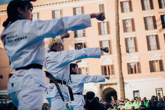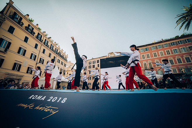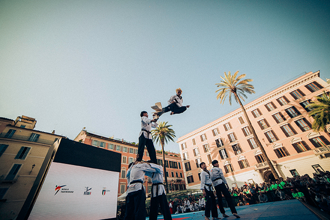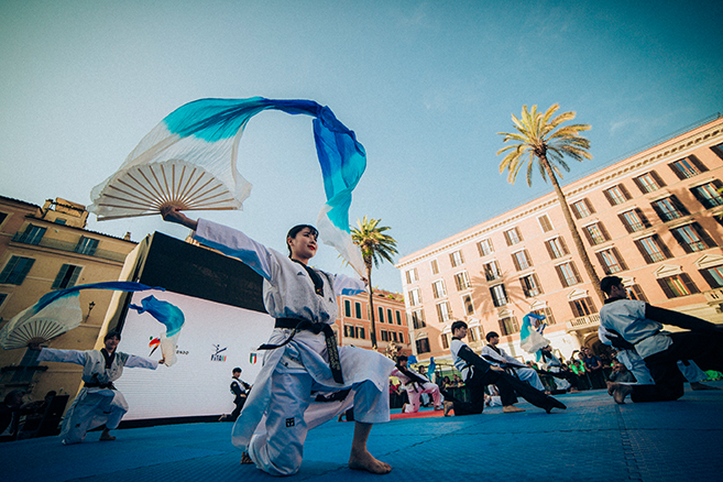 L’esibizione del Demo Team della World Taekwondo ha aperto a Piazza di Spagna il lungo week-end del Grand Prix di Roma